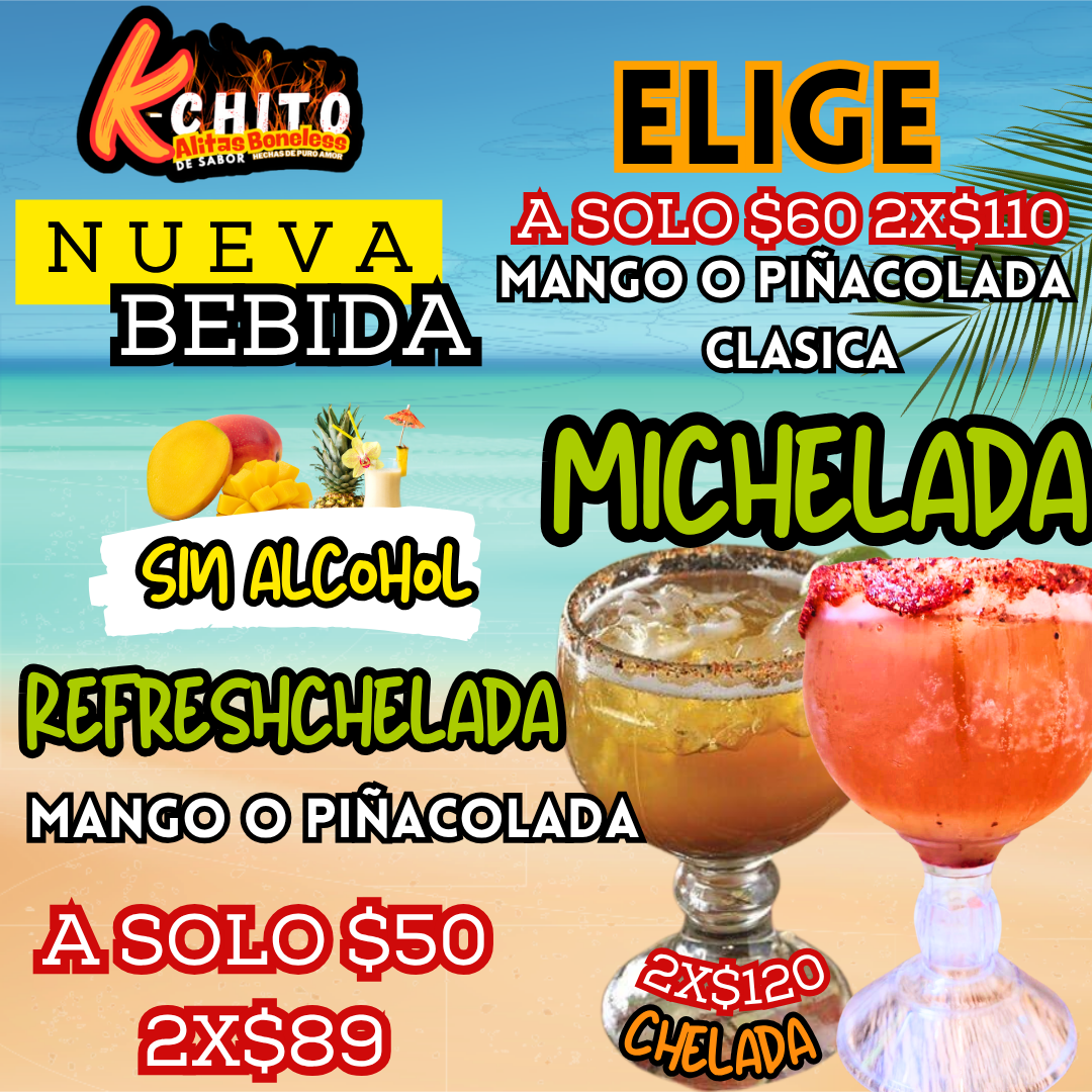 Disfruta de una Michelada clasica o si prefieres algo diferente una de mango o piña colada.